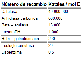 - Nº de recambio o actividad molecular: (nº mol S /s) /molec. E.Catal o Katal: mol S /s