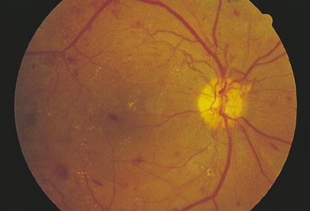 La neovascularización en respuesta a la hipoxia retiniana constituye el sello de la retinopatía proliferativa diabética. Estos vasos neoformados pueden aparecer en el nervio óptico, la mácula, o ambos, y se rompen con facilidad, provocando hemorragia vítrea, fibrosis y, en último término, desprendimiento de retina. No todos los individuos con retinopatía no proliferativa avanzan a la forma proliferativa, pero cuanto más grave es aquélla mayor es la probabilidad de que esto último ocurra en el plazo de cinco años. Esto crea una oportunidad clara de detección precoz y de tratamiento de la retinopatía diabética. Puede ocurrir edema macular clínicamente importante cuando sólo existe retinopatía no proliferativa. La angiografía con fluoresceína resulta a menudo útil para detectar el edema macular, que se asocia a una probabilidad de 25% de pérdida visual moderada en el transcurso de los tres años siguientes.