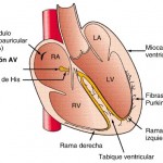 El estímulo para la despolarización que inicia el latido cardíaco normal se origina en el nódulo sinoauricular (SA) (fig. 210-1) o sinusal, una agrupación de células marcapasos. Éstas descargan espontáneamente, es decir, poseen automatismo. La primera fase de la activación eléctrica del corazón consiste en la expansión de la onda de despolarización a través de las aurículas derecha e izquierda y continúa con la contracción auricular. A continuación, el impulso estimula los marcapasos y los tejidos de conducción especializados en el nódulo auriculoventricular (AV) y en el haz de His; la combinación de estas dos regiones conforma la unión AV. El haz de His se bifurca en dos ramas principales, derecha e izquierda, que transmiten rápidamente la onda de despolarización hacia el miocardio del ventrículo derecho e izquierdo a través de las fibras de Purkinje. La rama izquierda se divide, a su vez, en dos: un fascículo anterior y otro posterior. Los frentes de despolarización se extienden, por último, a través de la pared ventricular, desde el endocardio hacia el epicardio, lo que desencadena la contracción ventricular.