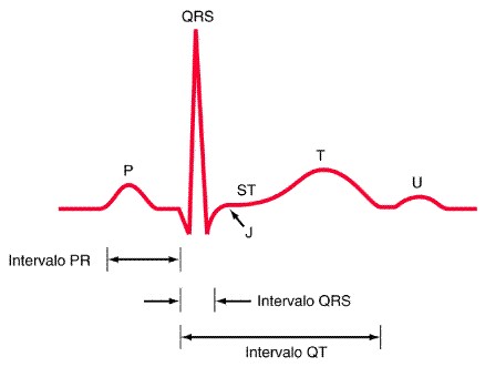 El complejo QRS se subdivide en deflexiones u ondas concretas. Si la deflexión inicial en una determinada derivación es negativa, se denomina onda Q; si es positiva, se habla de una onda R. La deflexión negativa que sigue a la onda R se denomina onda S. Las ondas positivas o negativas posteriores reciben el nombre de R’ y S’, respectivamente. Las letras minúsculas (qrs) se utilizan para indicar que la amplitud de las ondas es reducida. Un complejo QRS totalmente negativo se denomina onda QS.