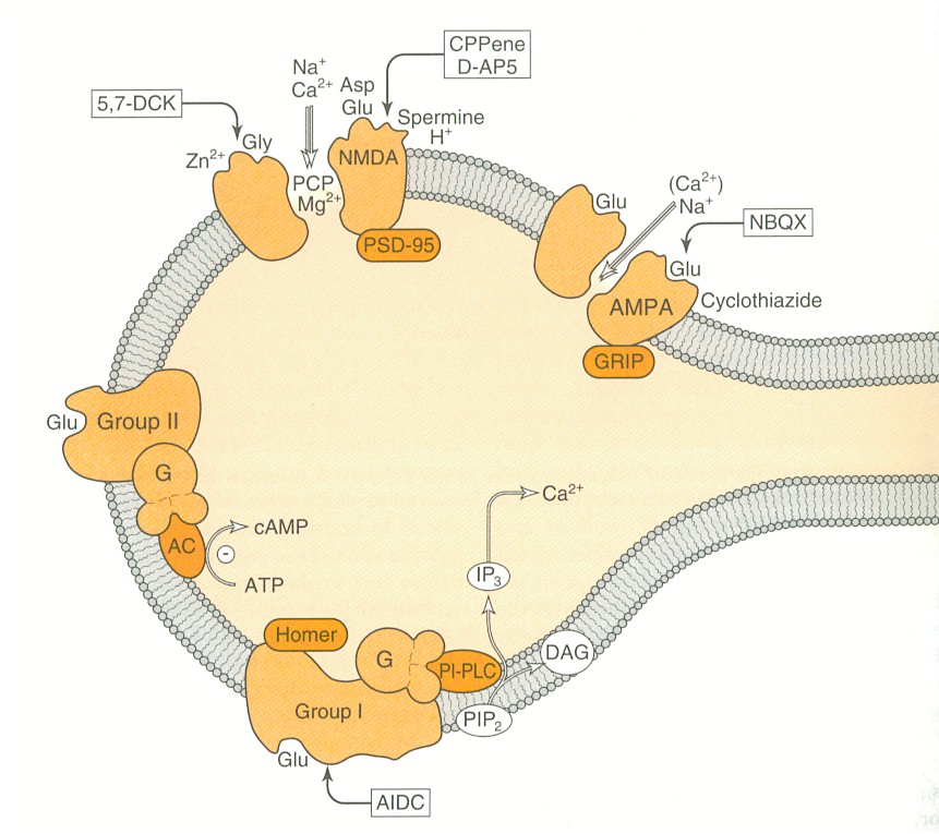 El receptor nicotínico es un pentámero con cuatro tipos de subunidades glucoproteicas, estos receptores tienen uno o dos sitios los que al ser activados por un agonista nicotínico, producen un cambio en la conformación de la proteina receptora, lo que permite a los iones de sodio y potasio difundir rapidamente a favor de su gradiente de concentración, esto produce la despolarización de la célula nerviosa, haciendo que se inicie la transmisión eléctrica.